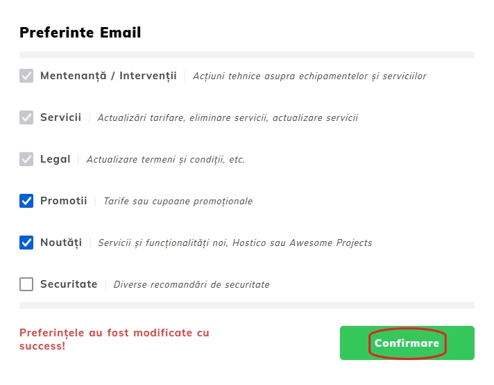 Atualize suas preferências de email na conta Hostico para receber notificações personalizadas sobre manutenção, serviços, promoções e segurança.